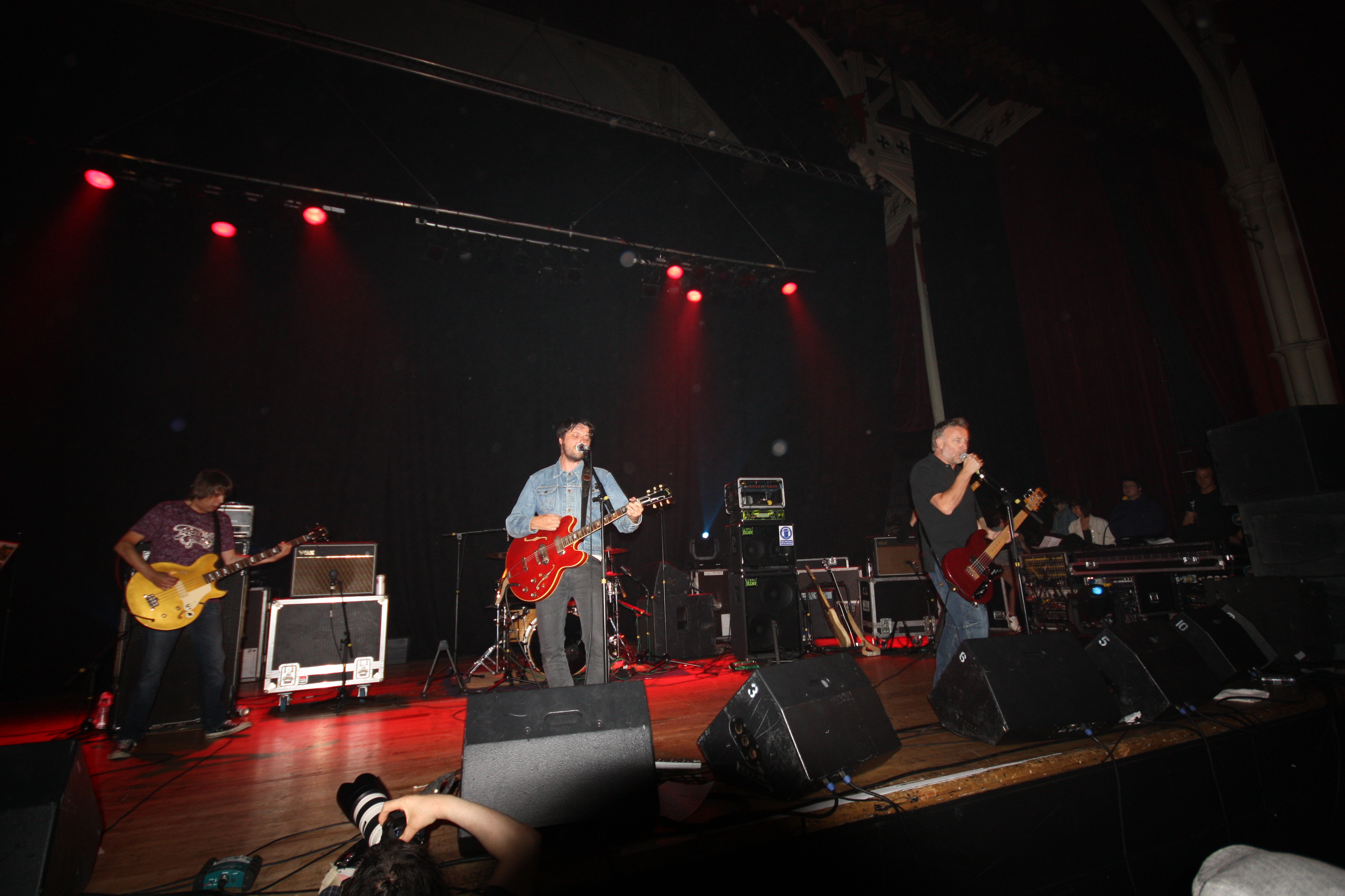 Due to the poor weather and the pull of the bar I stayed in The Empire. Watched a bit of John Power, he of The Las and Cast fame. Began well with a Cast song but soon I was thinking of other better things. So it was off to the town Hall to see Freebass. A Manchester super group containg 3 bass players!!! Pete Hook, Mani and Andy Rourke. The first problem was that Andy Rourke didn’t actually turn up. The second problem was that they weren’t really very good. They sounded ok to begin with but there wasn’t anything there to distinguish them from any other middle of the bill indie band. The lead singer looked like the brother from Gavin & Stacey. I actually thought it was the brother from Gavin & Stacey but I had had a few by then. Mani should stick to Primal Scream and Pete Hook should make up with Barney and get New Order back on the road. Andy Rourke probably did well to miss it. http://www.myspace.com/freebassuk