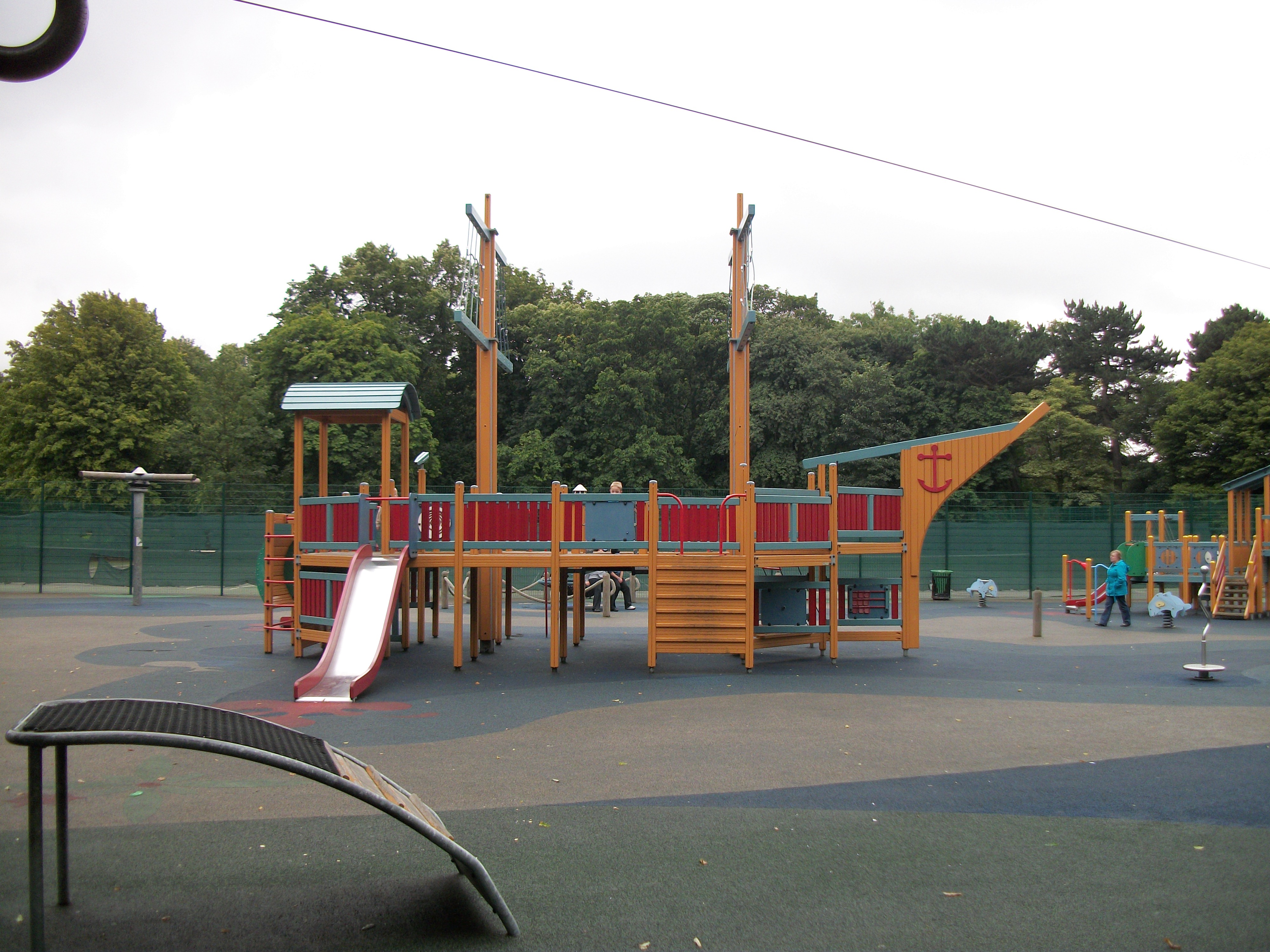 There are also bowling greens, tennis courts and an elegant bandstand. The bowling greens date back to the earliest days and the club celebrated its centenary in 1995. Visitors are welcome. (see the link below) The childrens play area is brand new and one of the best, if not the best, we have visited. Climbing frames, a pirate ship and a zip line are just a few of the attractions. All safe and well looked after. A pavillion serving refreshments is open all day.