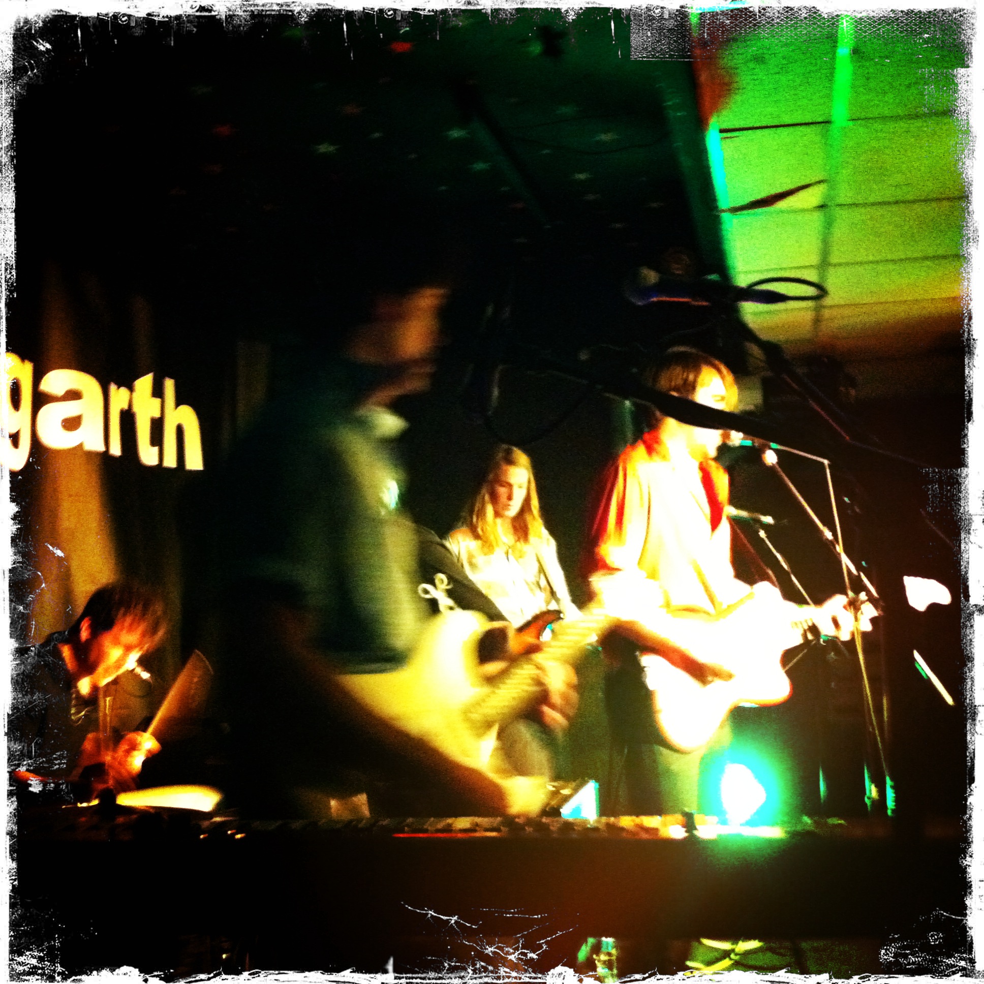 First time in the Westgarth and what a cracking place, a working men’s club, with a good sized room upstairs where The Kids are Solid Gold, put bands on. No nonsense, dead easy, reasonable priced drinks and friendly punters. Great start. Good mix of people too. Your usual range of tuned in students and a surprising number of *cough* more seasoned gig goers… Again a sold out capacity crowd, yet not shoe-horned into a fire hazard crush hall like some places… enough space to watch the bands and drink your drink, without getting it all over yourself. Four bands in total for £7. Leno, Said The Gramophone and Billy The Kid. Cracking set by Billy The Kid, by the way… must admit I was yacking too much to properly appreciate the first 2 bands.