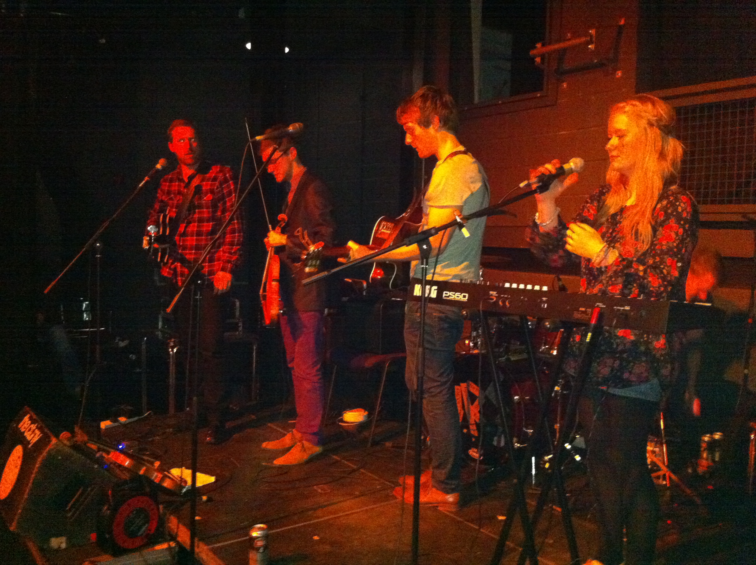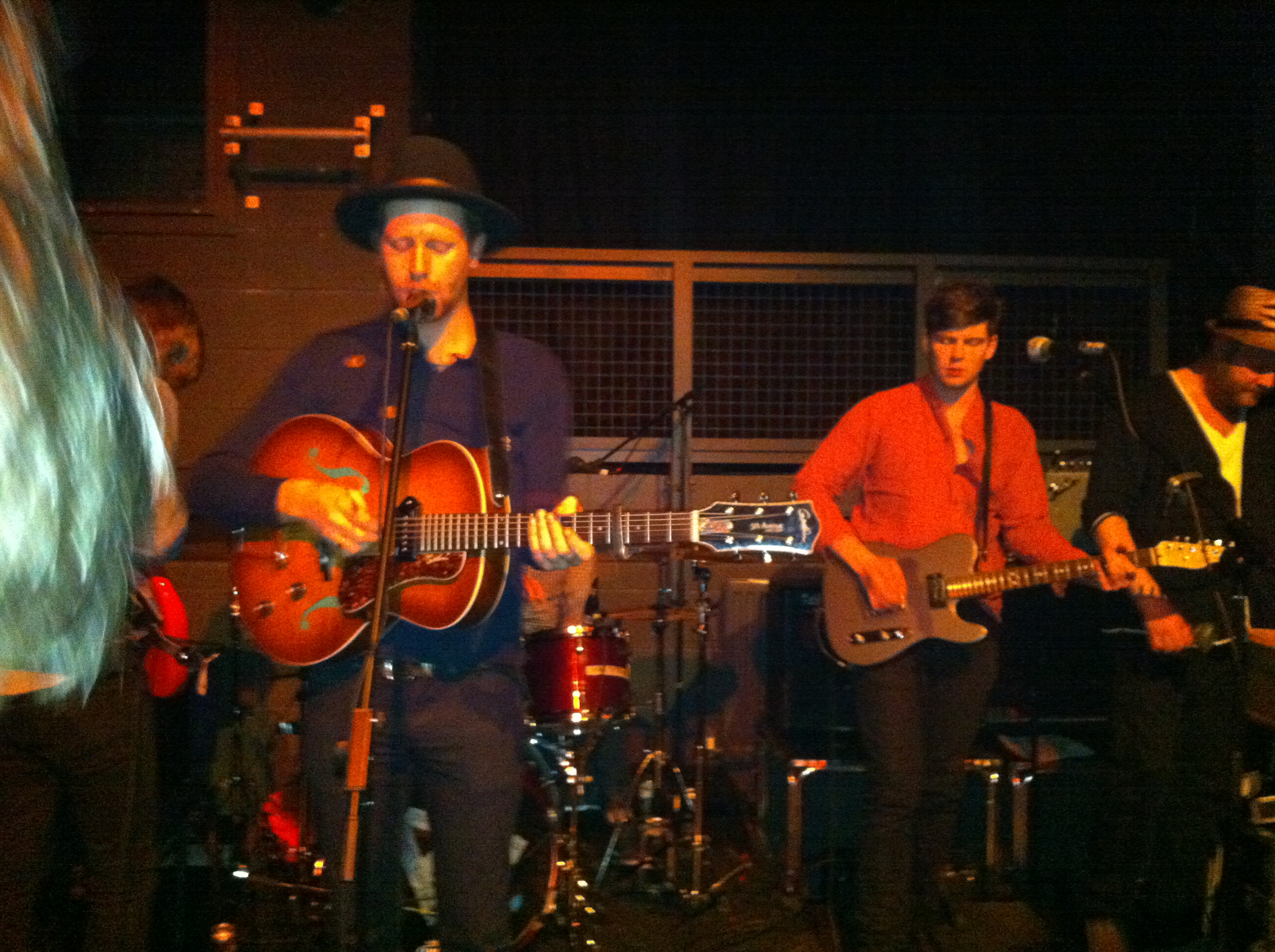First up were The O’s, a 2 piece from Texas. Imagine a one man band where the gadgie plays guitar, drums, harmonica, tambourine, uekele, a lowebro (google it!!) and just about anything else he can lay his hands on. Well now double that image! The guys had just flown in that day from the US and had scrambled their way up to Newcastle with only minutes to spare. A healthy crowd of well over a 100 were there and their rip roaring mix of folk, rock and country (their description not mine) went down a treat. Headline tracks were ‘We will go walking’, ‘‘You’ve got your Heart’ ‘California’ ‘All good cafe’ and the fantastic finale ‘I love you so much’. Rotating between lead vocals Taylor and John had a vibrant, foot stomping 30 minute slot that will have left many in the crowd trawling their My Space page the next day. Well worth it in my opinion. http://www.myspace.com/wearetheos or http://www.wearetheo’s.com/