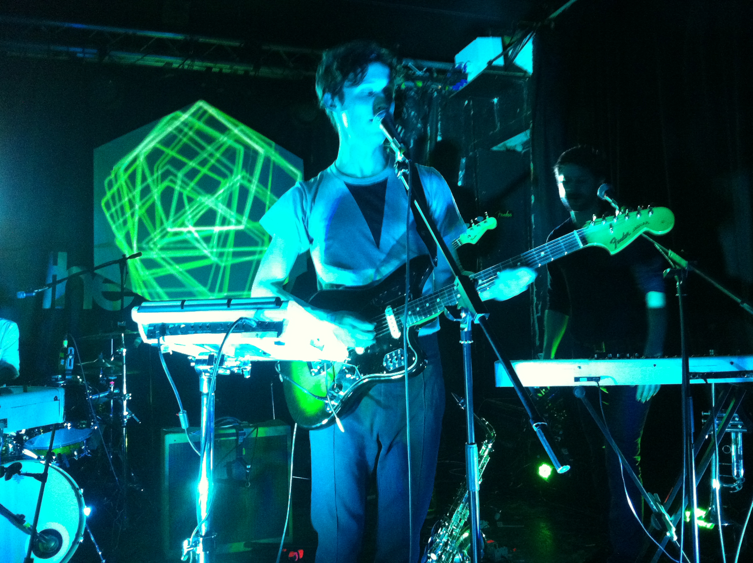 Like a Welsh Julian Cope, Meilyr Jones, the lead singer of this fantastic troupe stalks the stage not really knowing what to do next. Banging a big drum, playing guitar, jumping into the audience, smiling fantastically. I love Race Horses, me. I actually forgot how absolutely brilliant these boys are. It is well over a year since I saw them last but they have come back bigger, stronger, taller, fitter. They played nine songs. Only three of which were “old”. Six new songs might just wash over you but not with these boys. I cannot wait for album number two because on tonights showing it is going to be brilliant. My wife described Meilyrs voice as “Chocolate caramel and sherbet dip daps”. Best band of the night? Yes, by a nose!!!