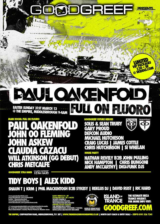 Next up the Empire plays host to the mighty DJ Paul Oakenfold behind the decks on Sunday 31st March, tickets are on sale now and this promises to be one hell of a night for all you party animals. The event starts at 9 pm and finishes at 4 am!! Quick couple of hours in bed then up for work!! Doubtful but who will care after dancing the night away with perhaps the finest DJ ever.